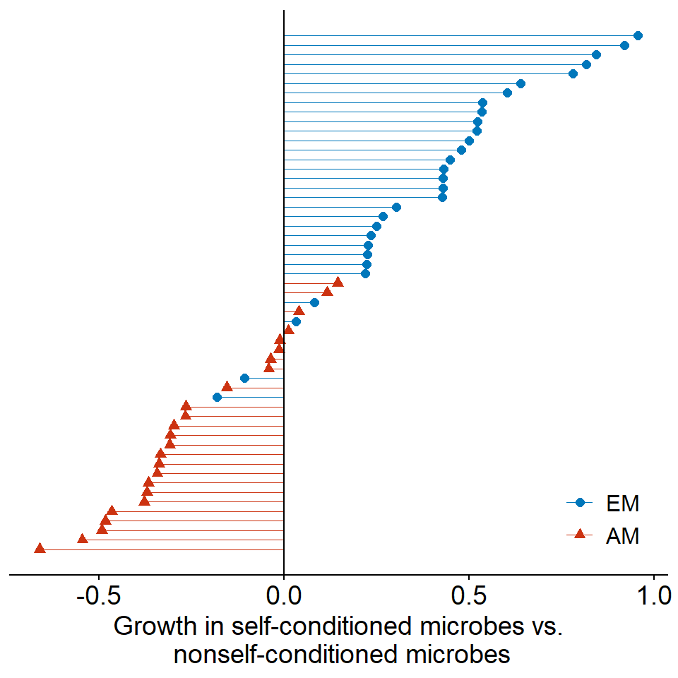 xlab("Growth in self-conditioned microbes vs.\n nonself-conditioned microbes") +
