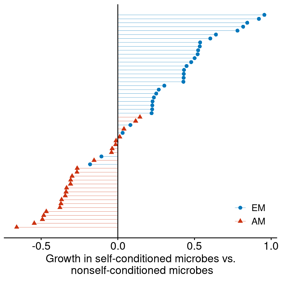 Interpretation: Plants have exponential population growth at a rate determined by the composition of the soil community.