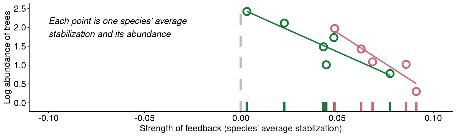 xlab("Strength of feedback (species' average stablization)") +